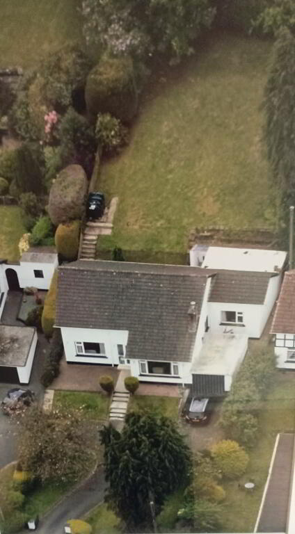 • EXTERIOR  Covered walk-way accessing side of property and rear garden, Rear elevated garden mainly in lawn with tree boundary. Front tarmac driveway leading to garage, housing OFCH boiler.  Garden to front in lawn with shrub areas and boundaries in hedging and fencing.